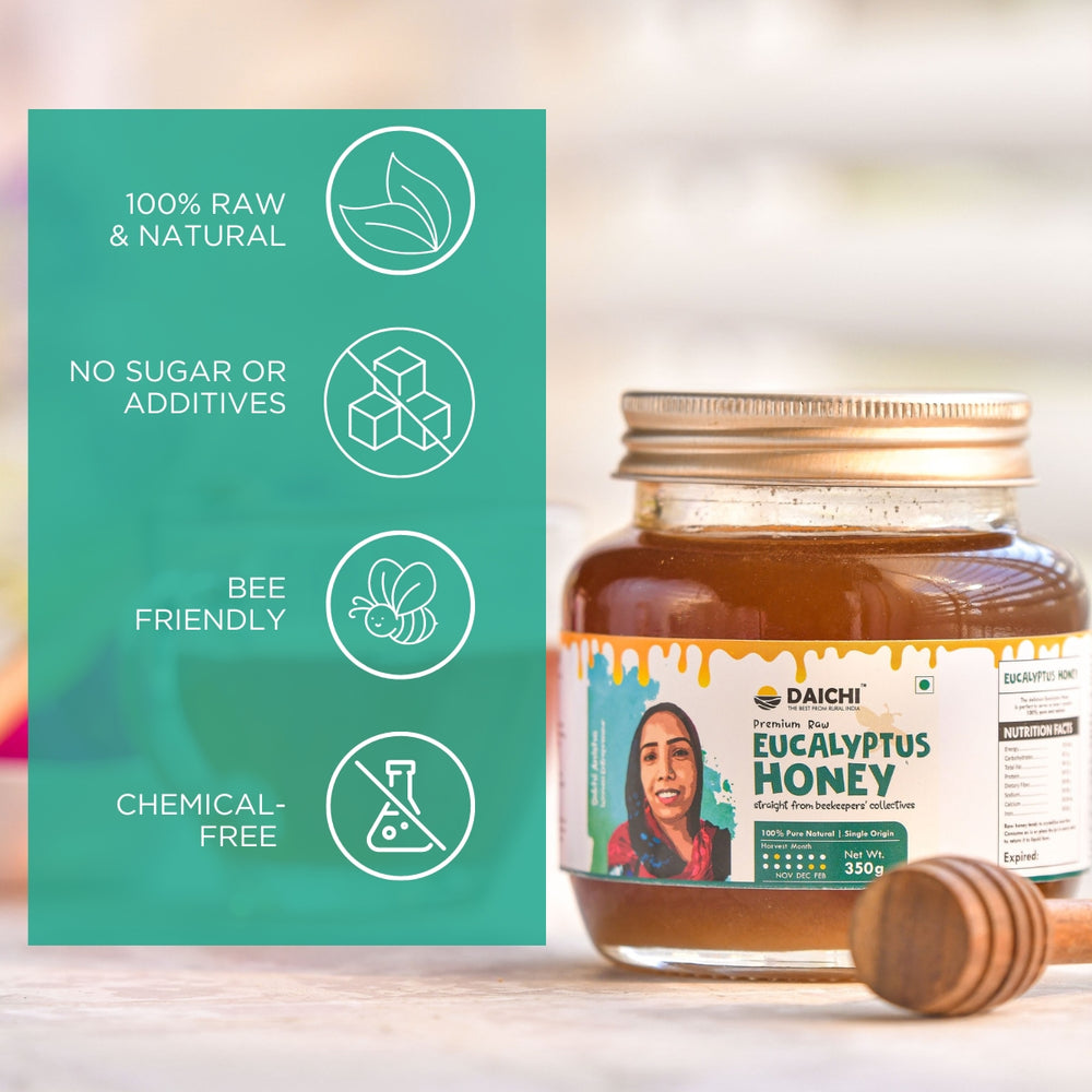 CRUELTY FREE: Daichi Eucalyptus honey is sourced directly from organic farmers’ collectives in Bihar who follow ethical and regenerative bee-keeping practices to ensure that no bees are harmed in the bee-keeping process..